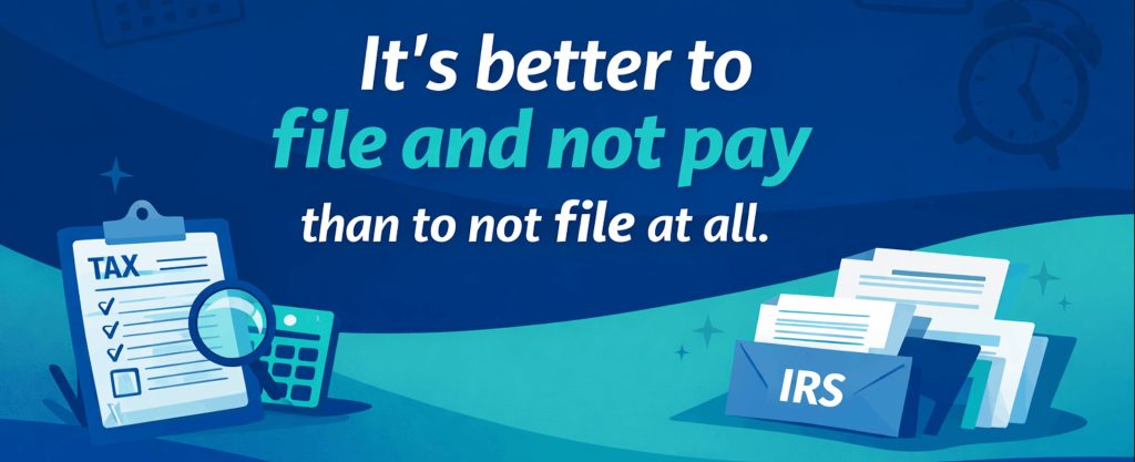 The IRS treats late filing and late payment differently. If you do not file, the penalties are generally much steeper than if you file and still owe money. In other words, filing now can help limit how much the problem grows.