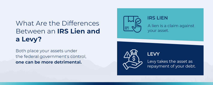 If this is starting to sound like the same thing explained in different ways, you’re not alone. Many people are unaware of the differences between a lien and a levy and even use the terms interchangeably. While an IRS lien and levy both place your assets under the federal government’s control, one can be more detrimental to your financial situation than the other.